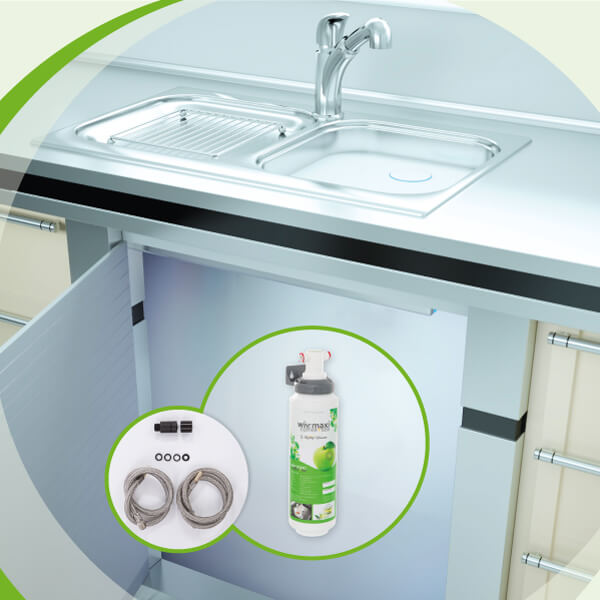 Der wiv mini lässt sich wie alle anderen Produkte der WiV-Serie ganz leicht unter der Küchenspüle einbauen. Somit bleibt die Arbeitsfläche frei und aufgeräumt. Im Lieferumfang der WiV-Serie sind alle Anschlussbauteile für den Standard-Wasseranschluss enthalten.